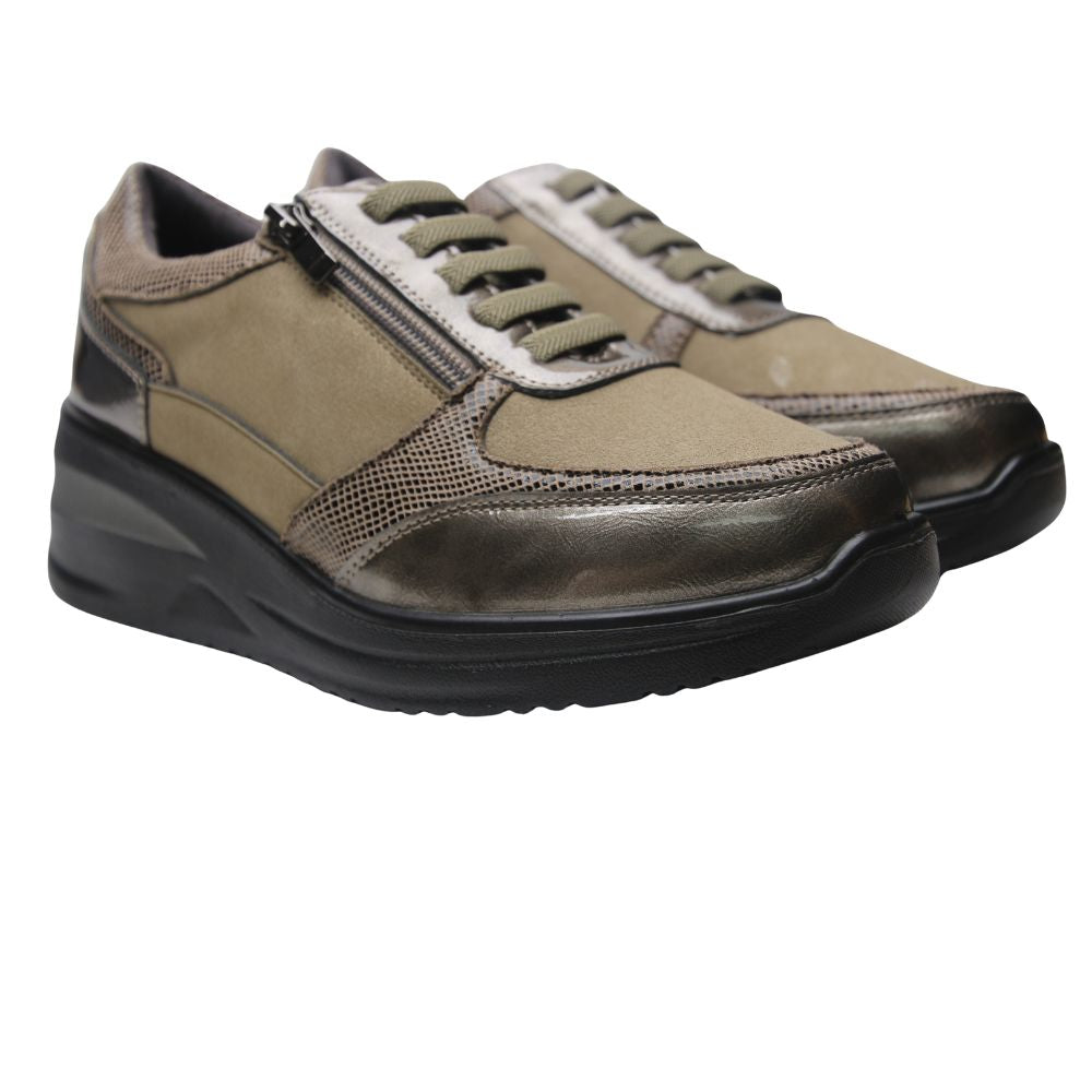 Zapatos de mujer en color taupe  con cuña de 3 cm.