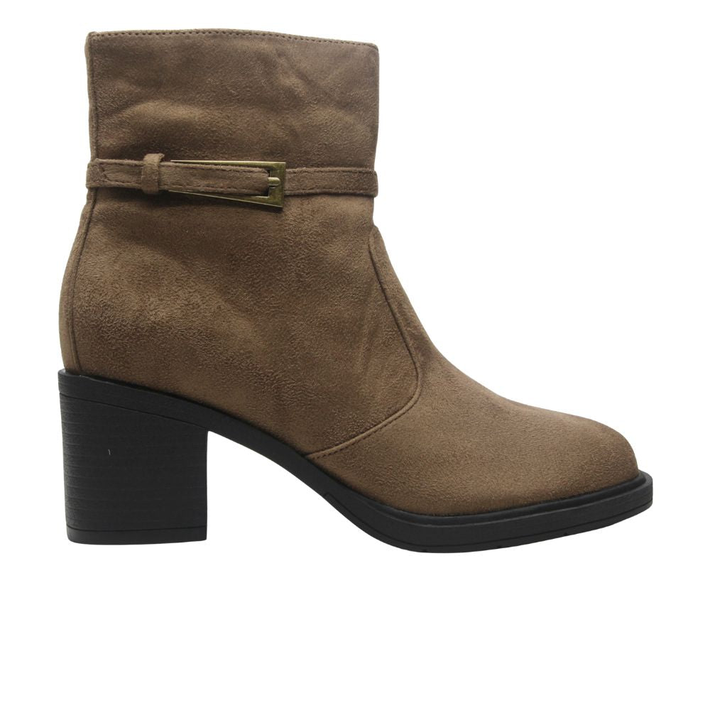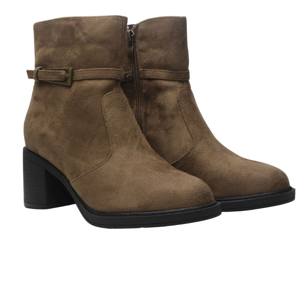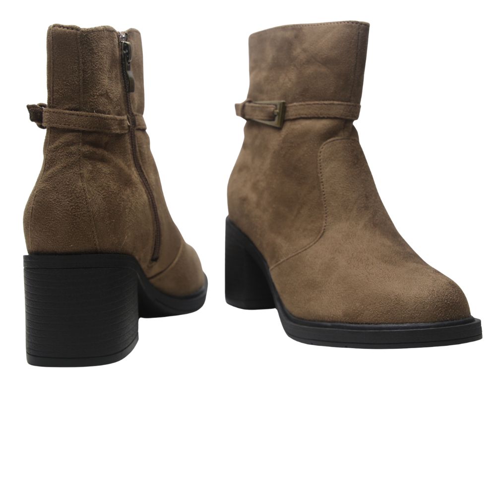 Botas de mujer con caña baja en color taupe y tacón de 5 cm.