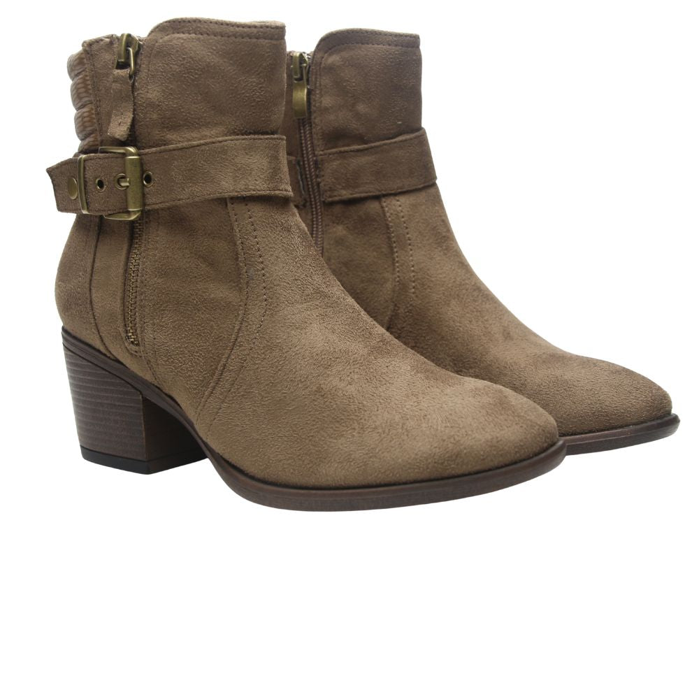 Botas de mujer en color taupe de caña baja y tacón dee 4 cm.