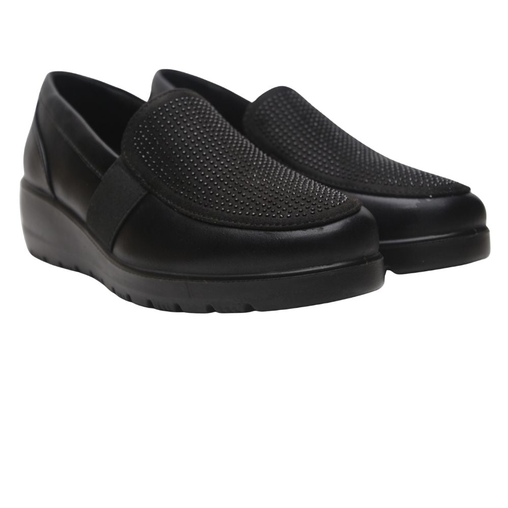 Zapatos de mujer en color negro con cuña de 2 cm.