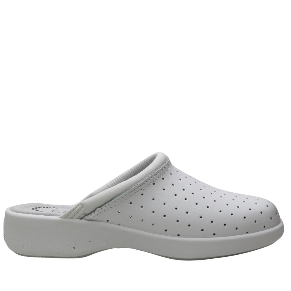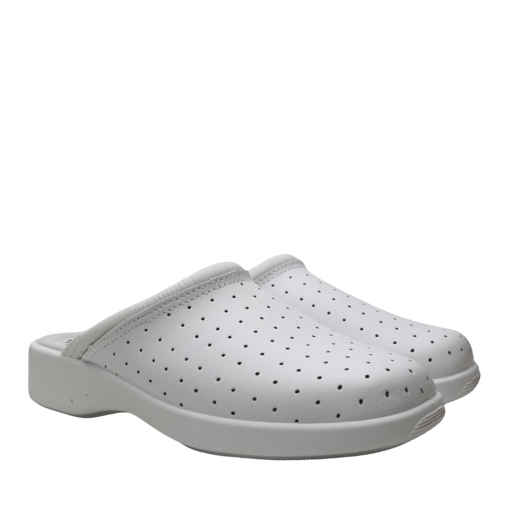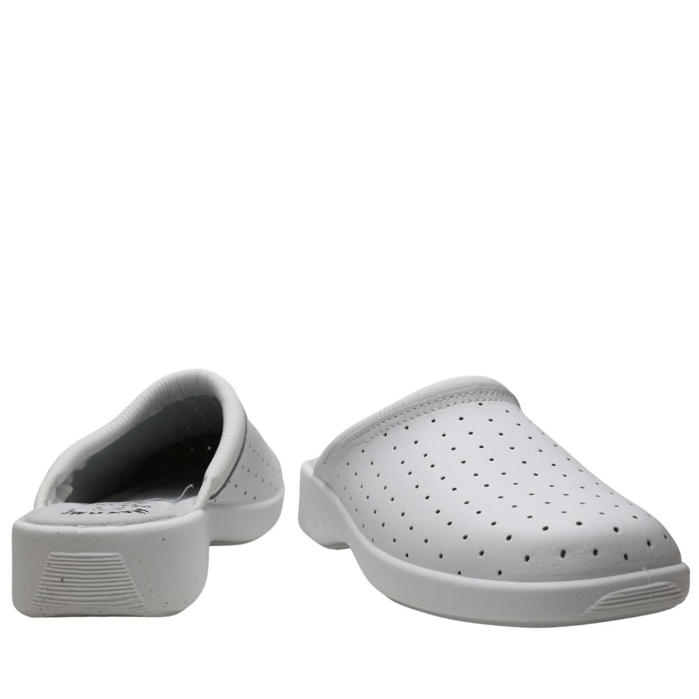Zapato laboral de mujer en color blanco, suela de goma antideslizante.