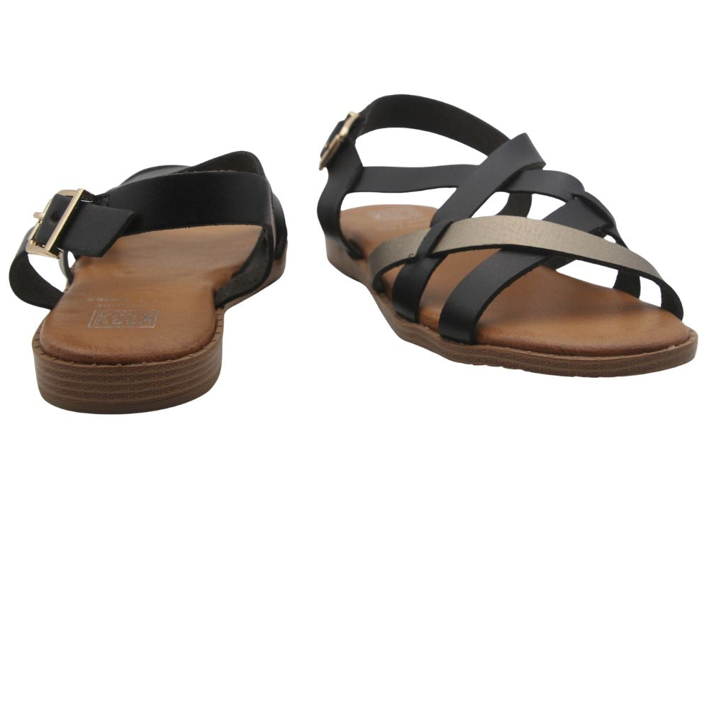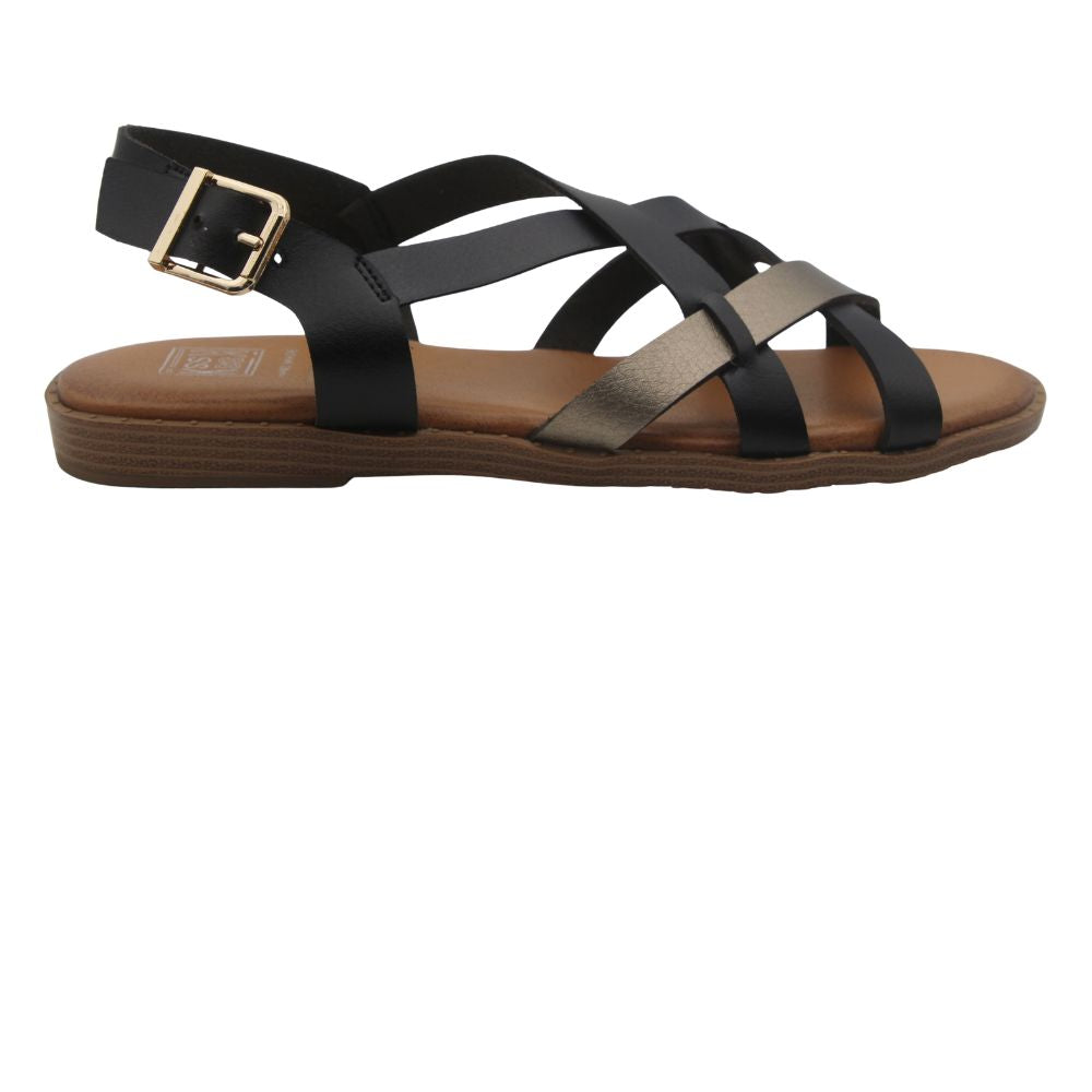 Sandalias de mujer en color negro y suela en color natural.