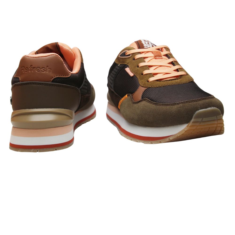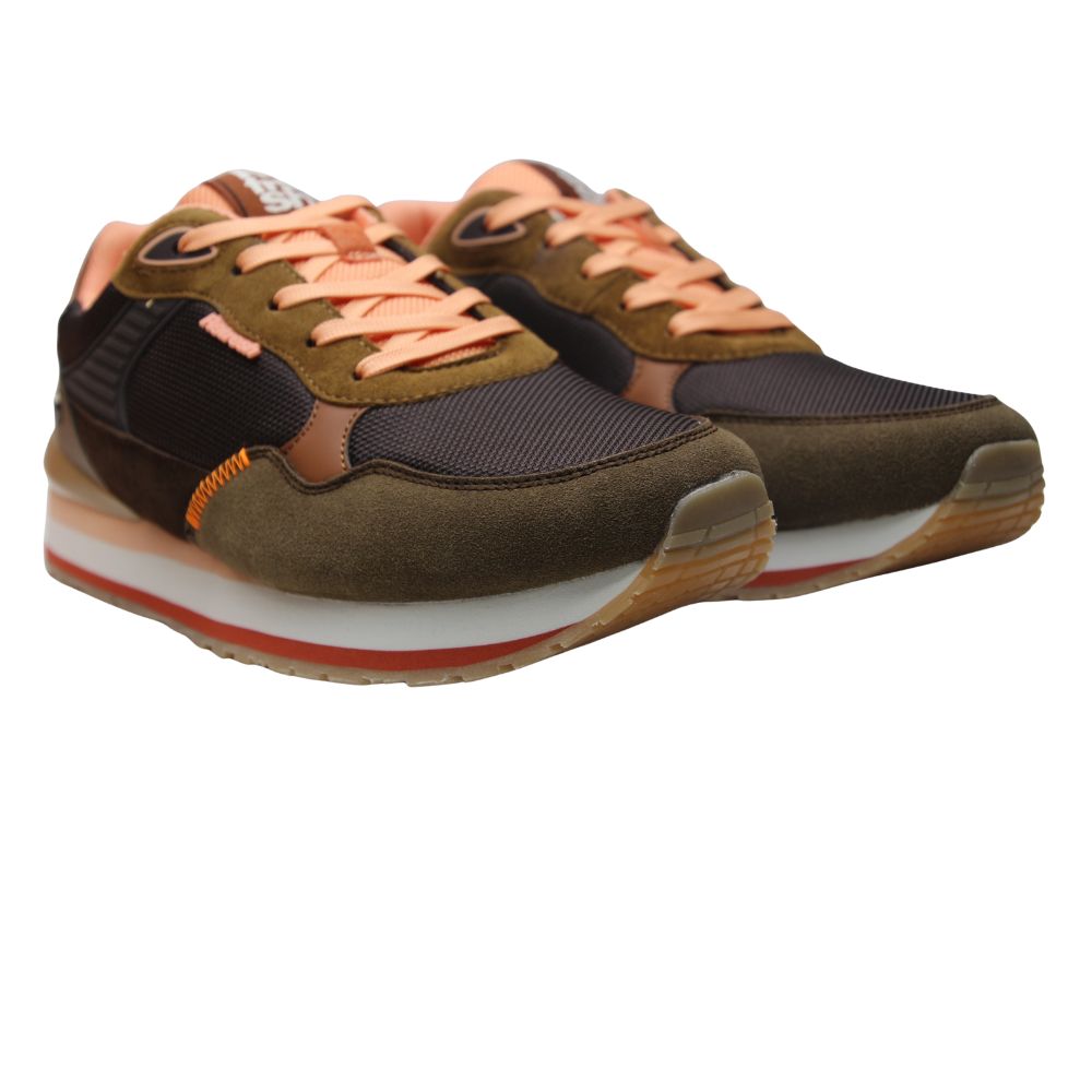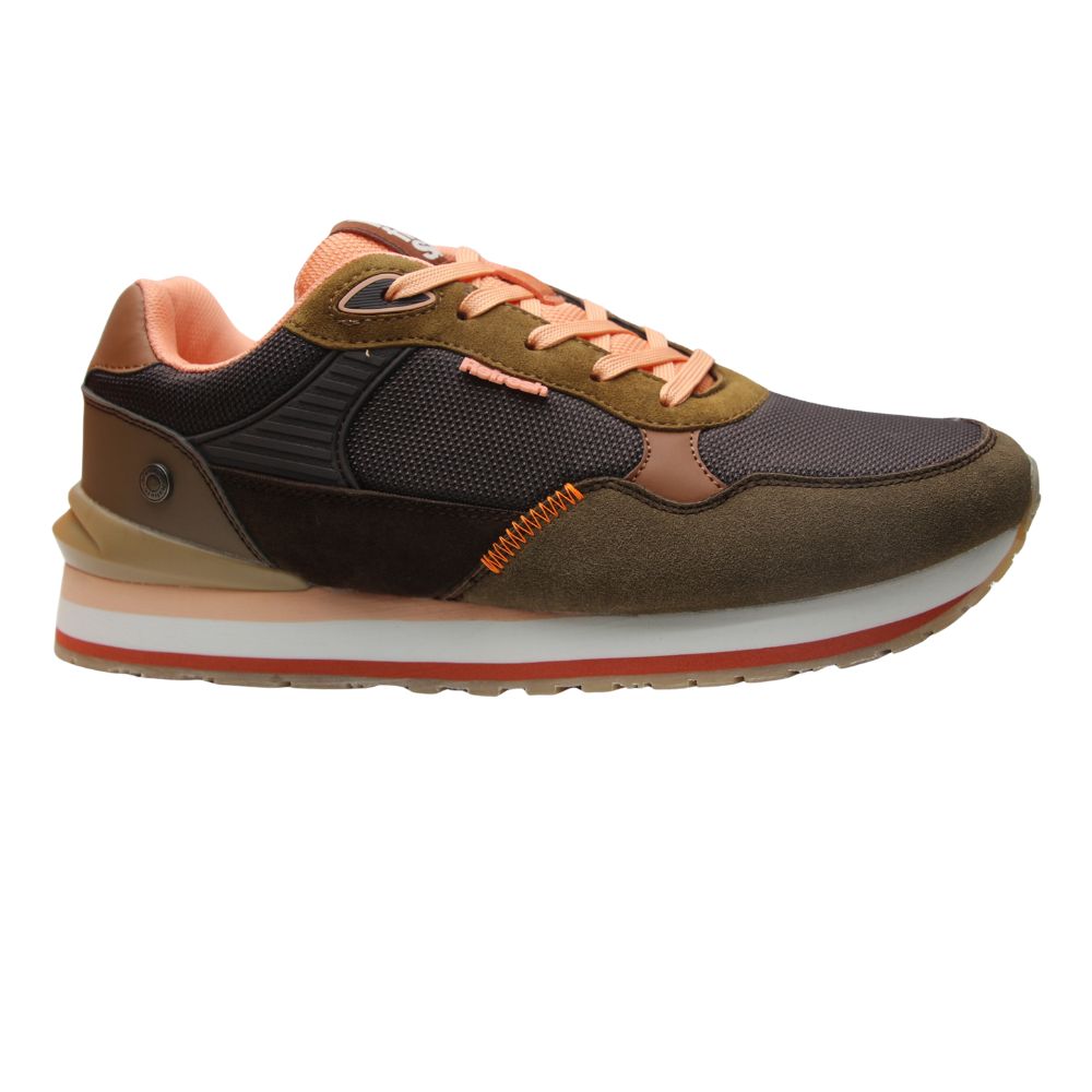Deportivos de mujer en color marrón combinado con naranja fluor.