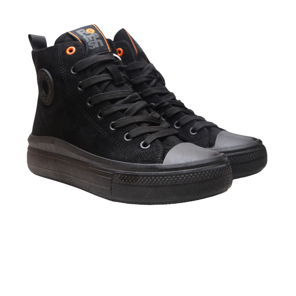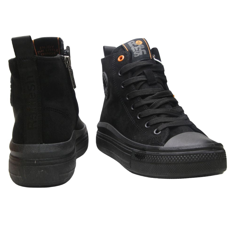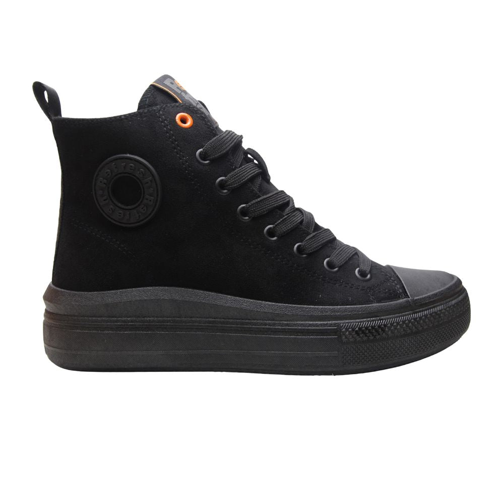 Zapatillas de mujer en color negro, tipo bota con plataforma al tono.